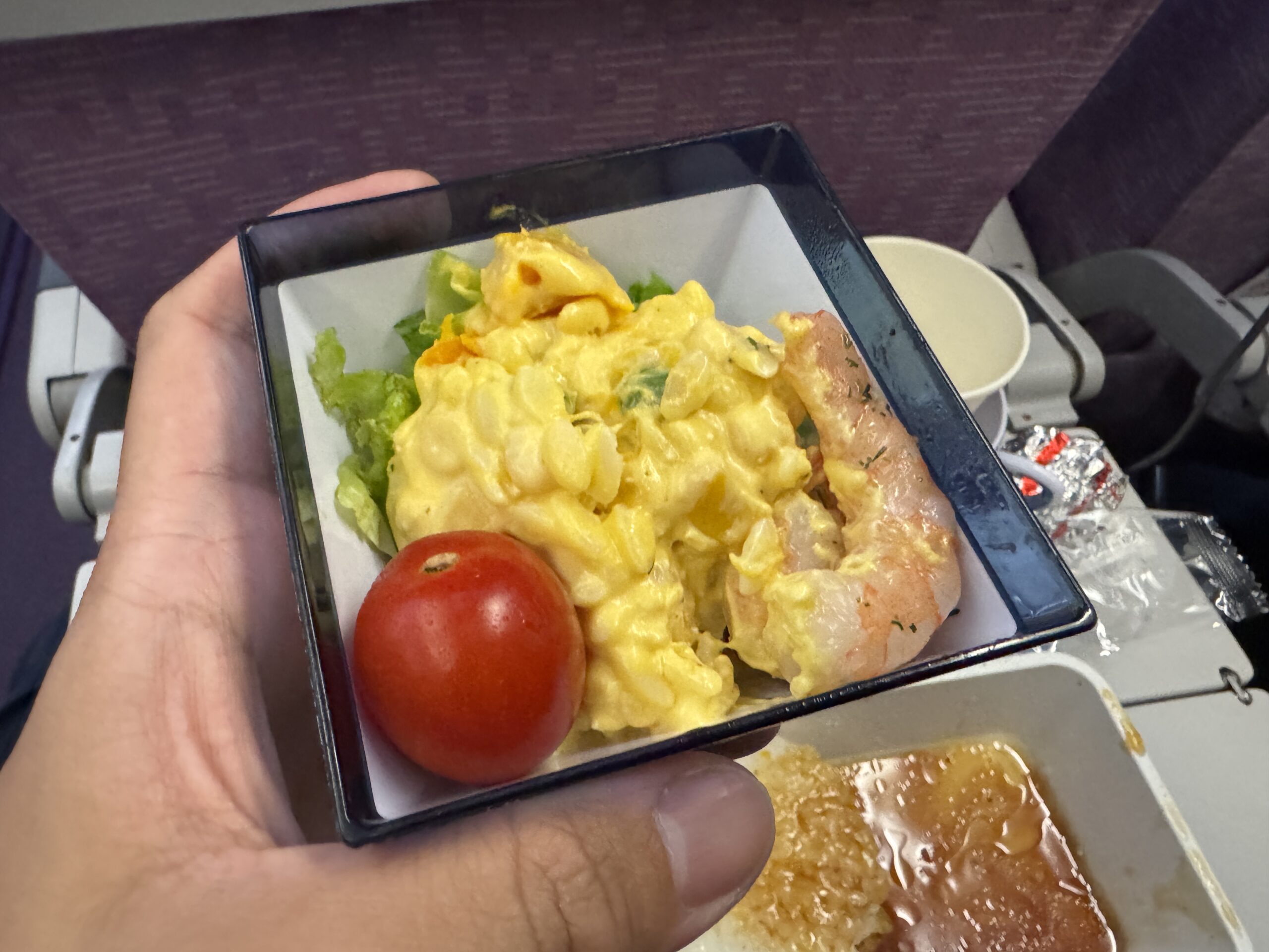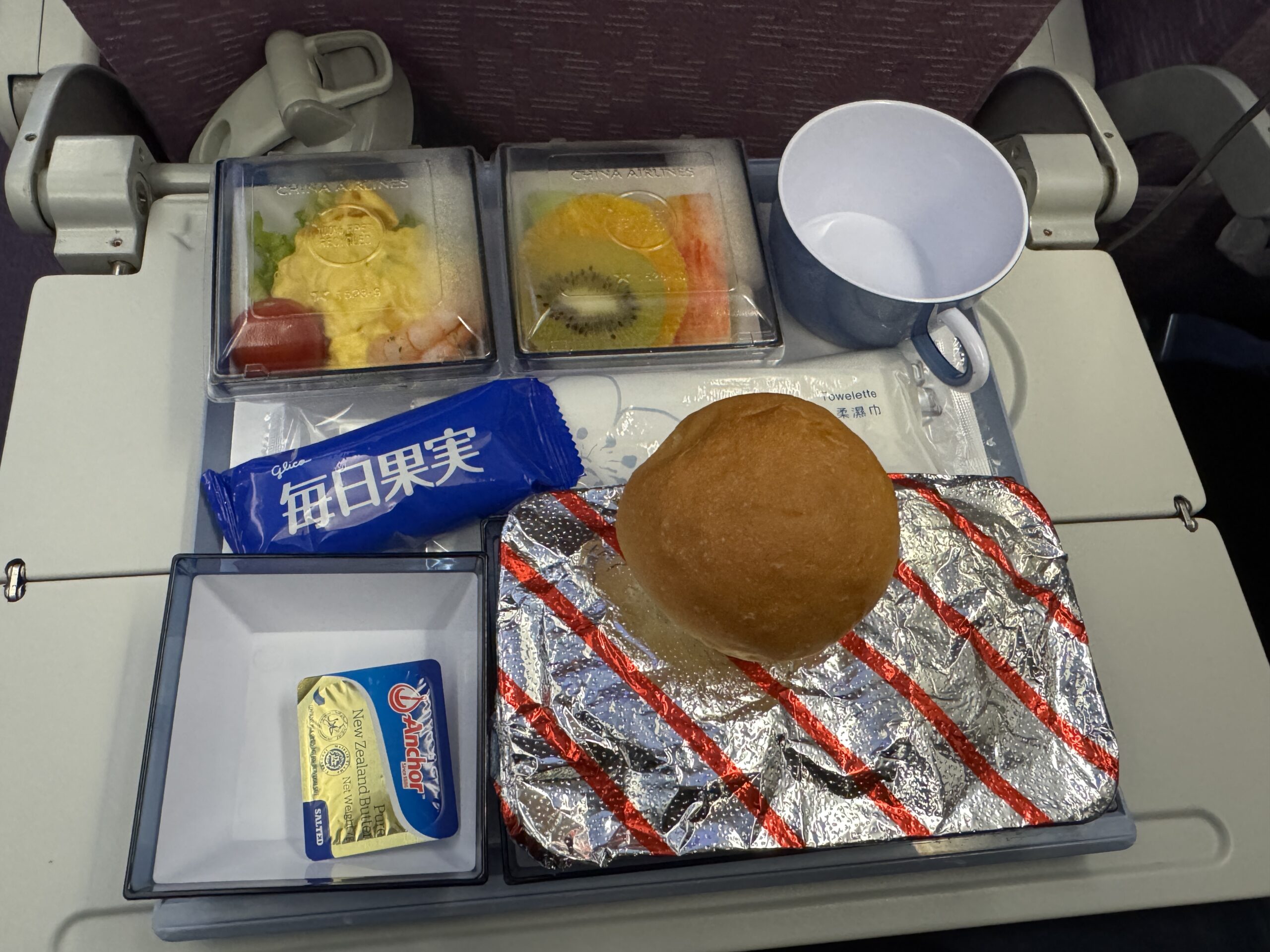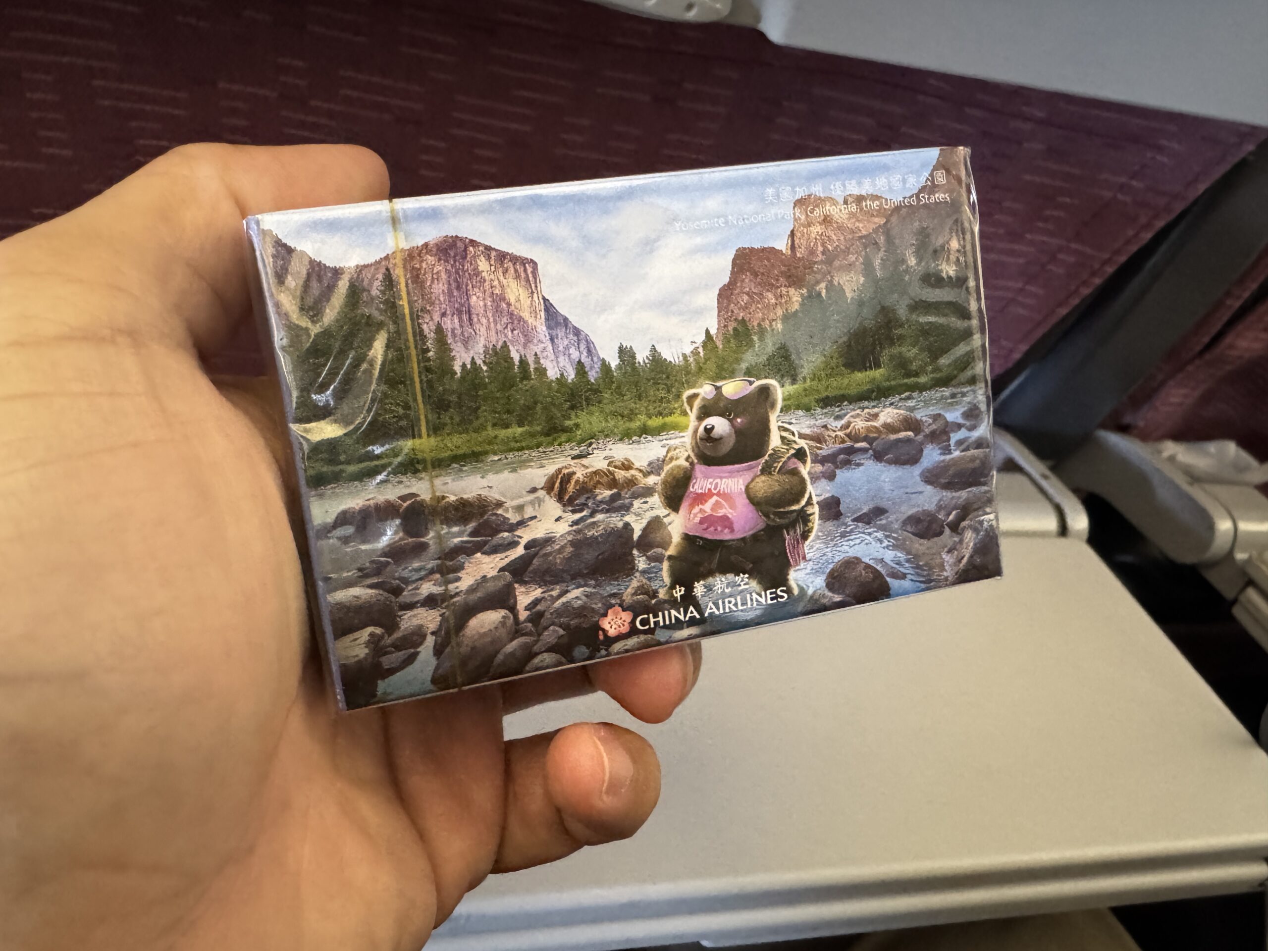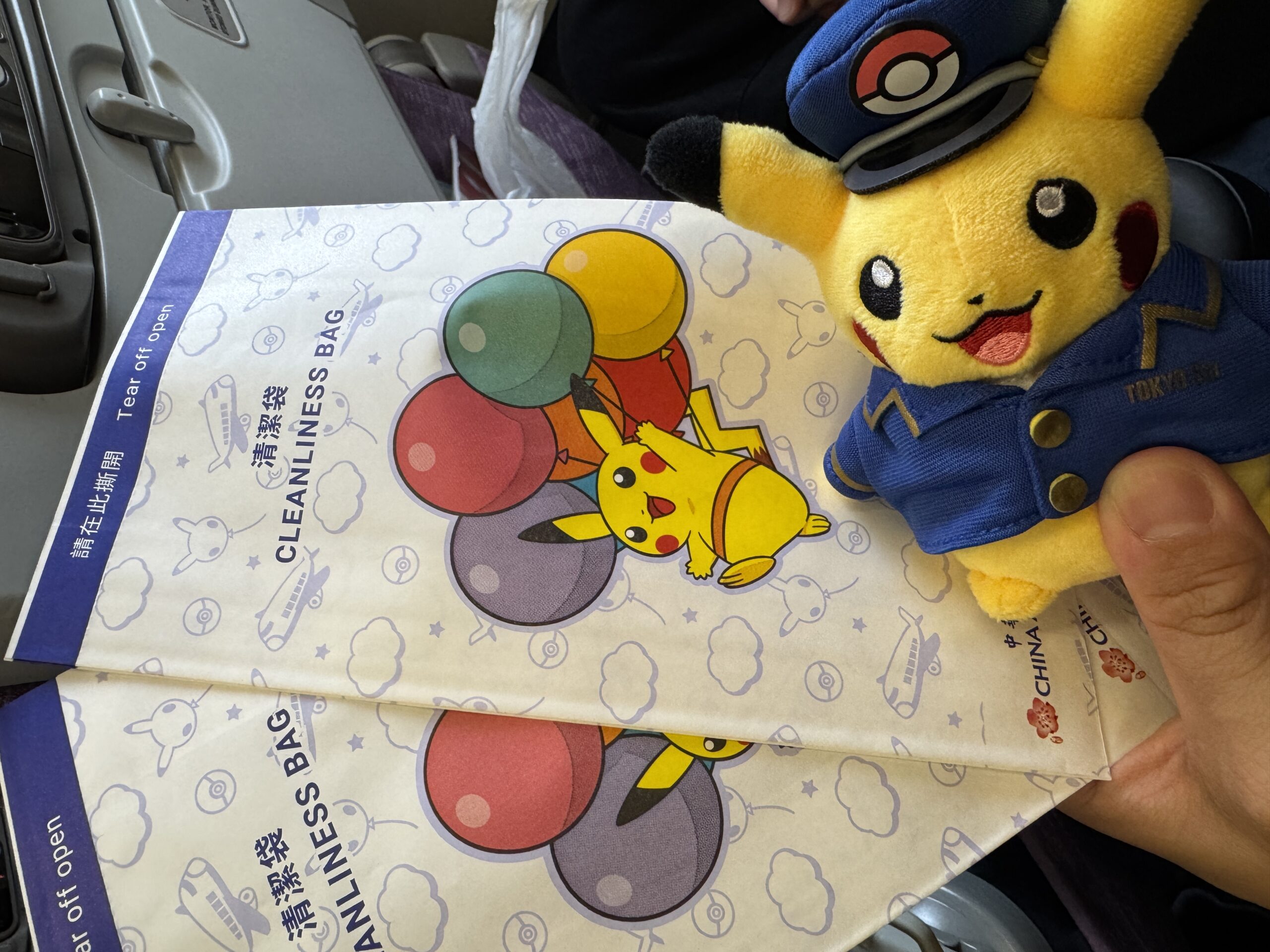 這次來回都是坐華航,剛好都遇到吉伊卡哇的聯名期間,雖然華航可以是先選擇餐點,但據網友回饋,正常配的餐點其實比較好吃,我們選的一個是薑汁豬肉、伊個是漢堡排,我覺得都中規中矩,不是特別好吃,但也不會到特別難吃,大概就及格這樣,不過解了一點餓,還是不錯啦。