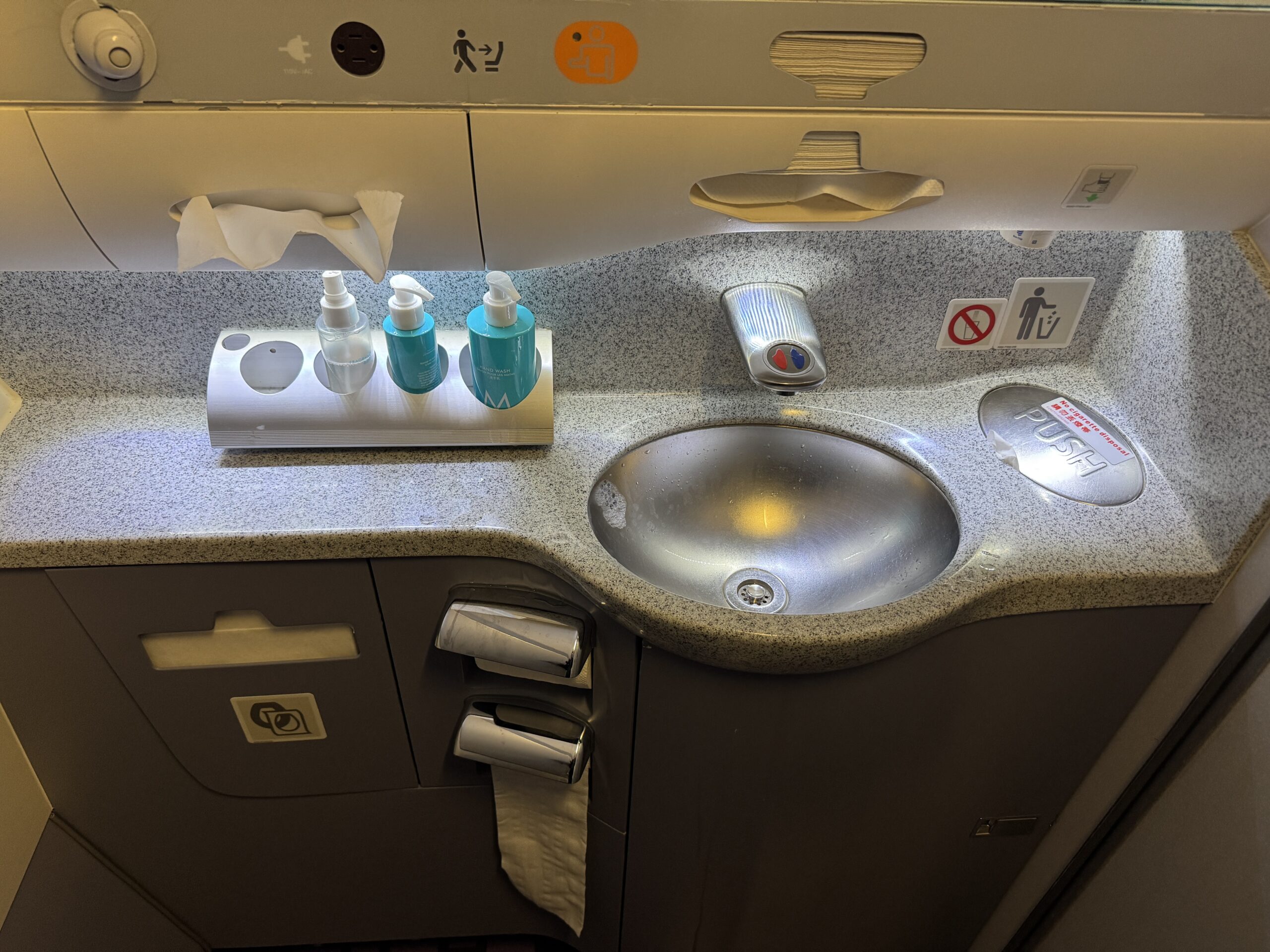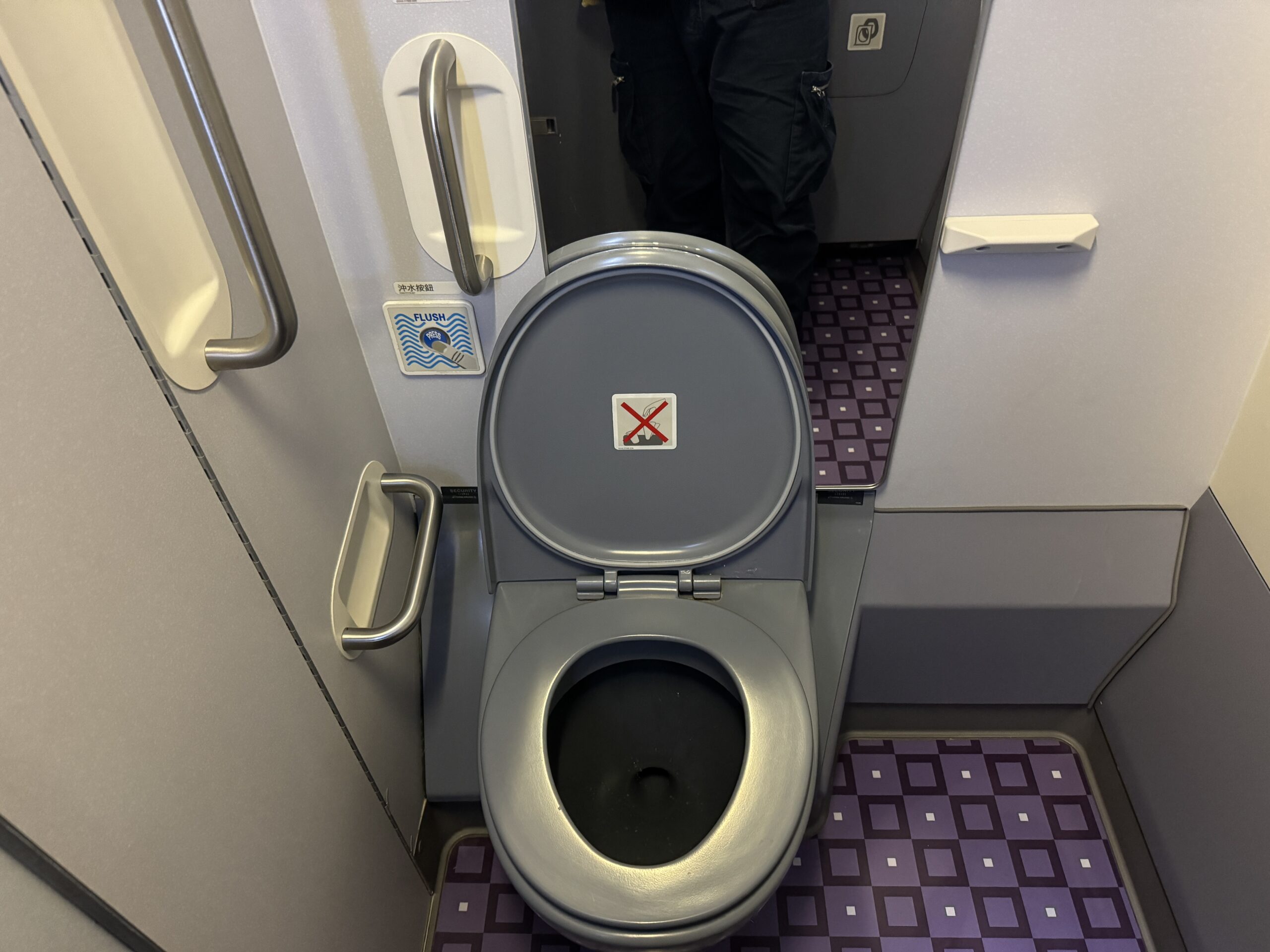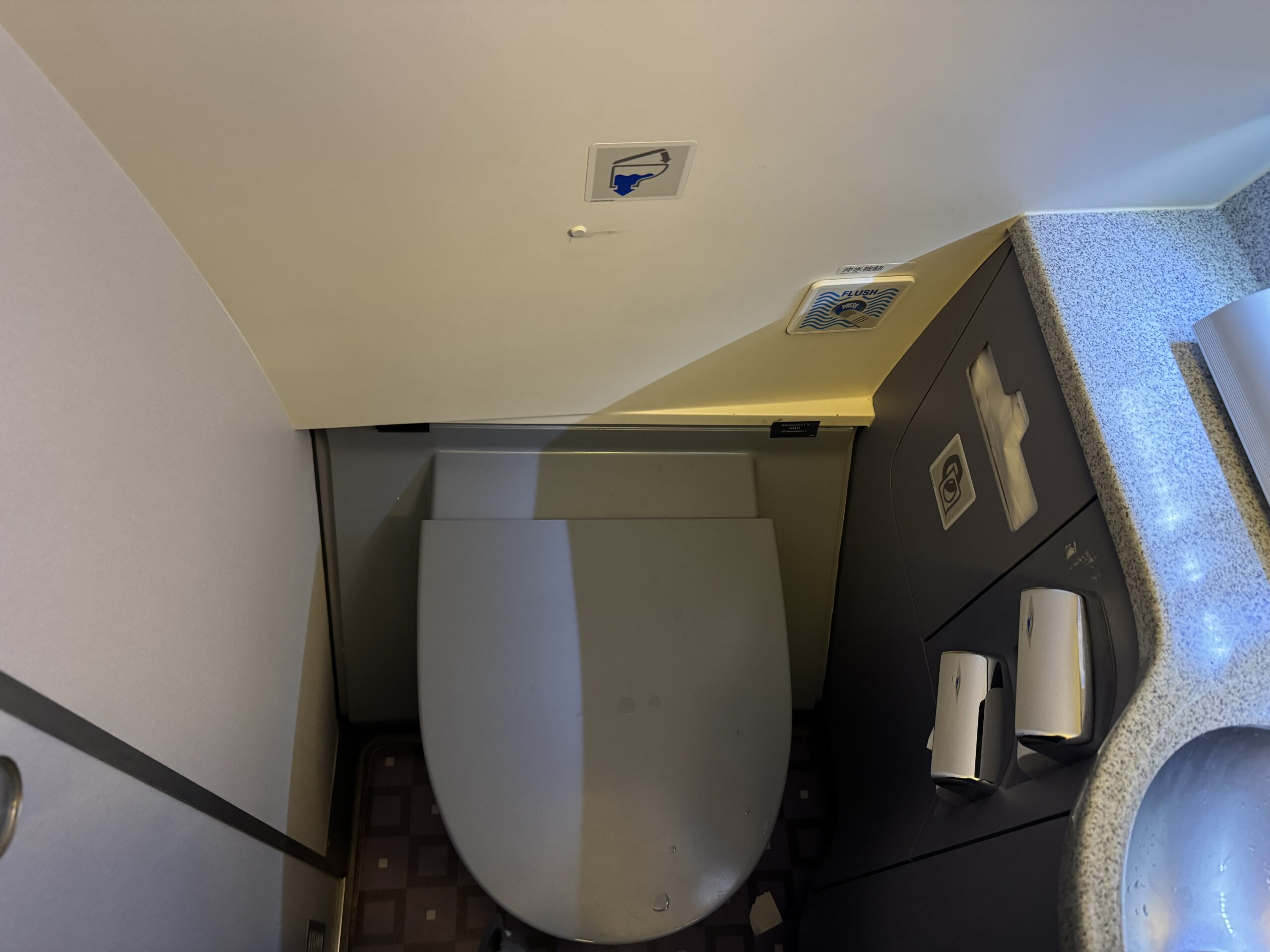 飛機上廁所對我來說是一個蠻重要的指標之一,之前坐亞洲航空,整個地板都濕濕的(可能跟種族文化有關,馬國每間廁所地板都超濕),就卡卡的很不舒服,但國航就非常乾淨,很棒!