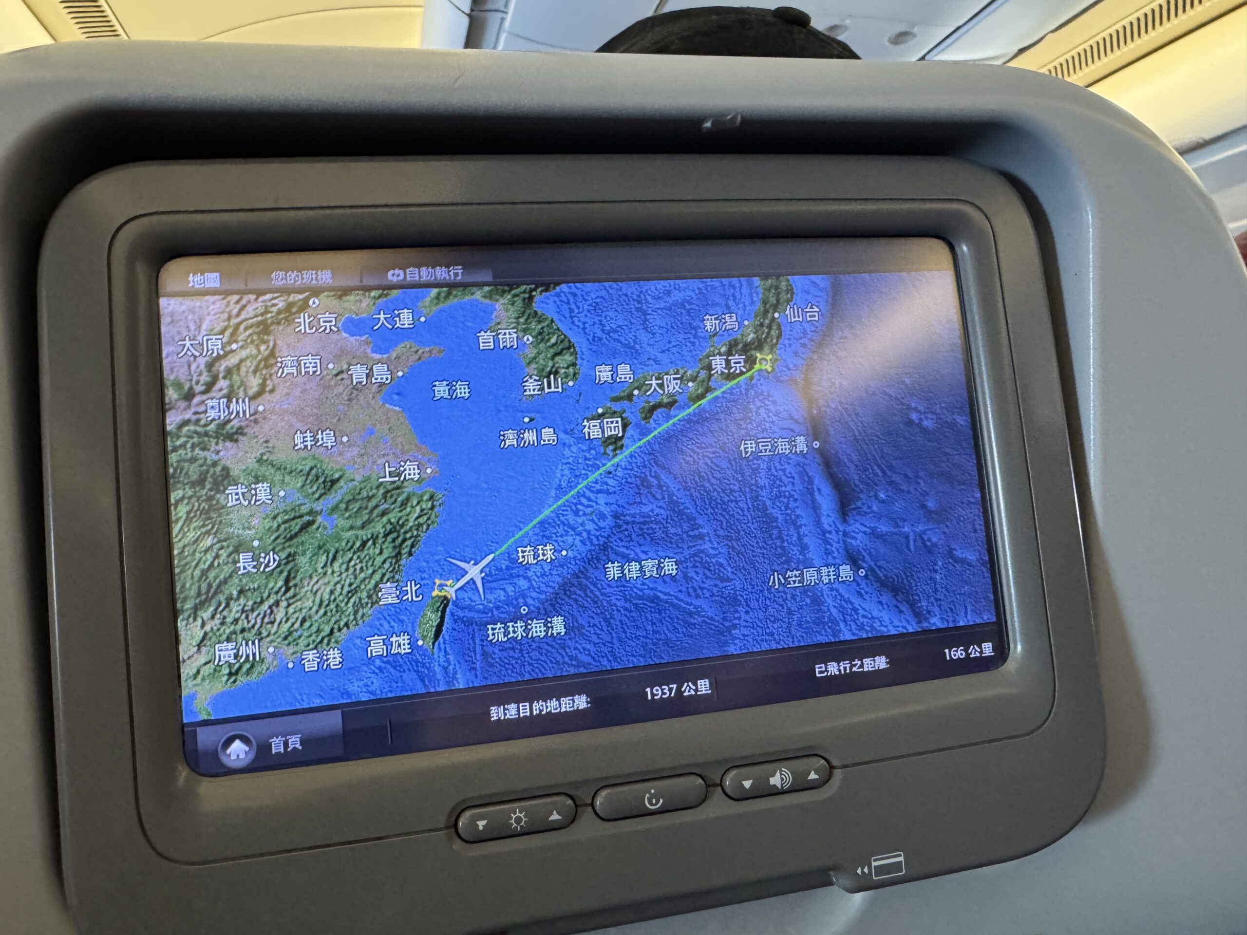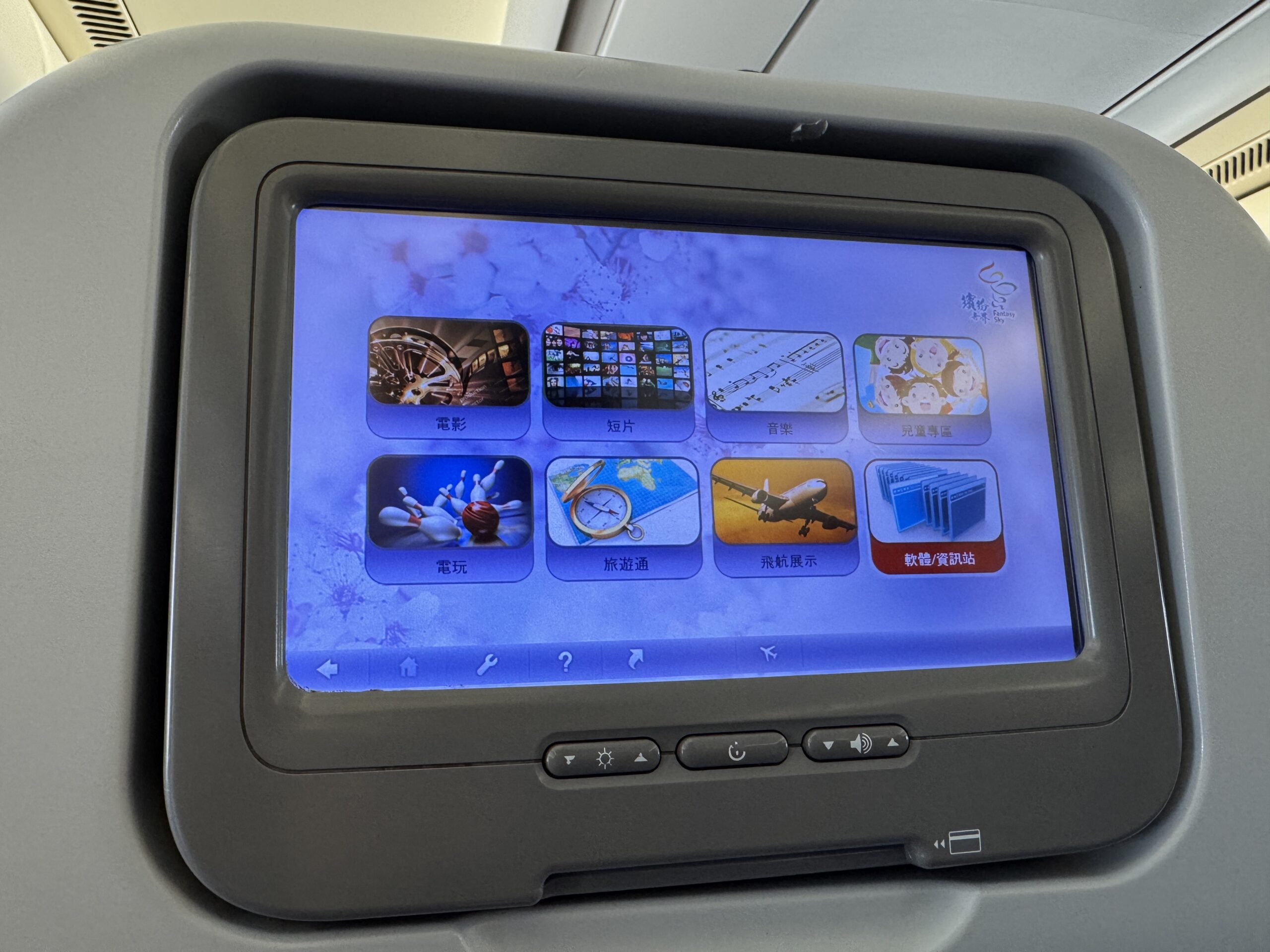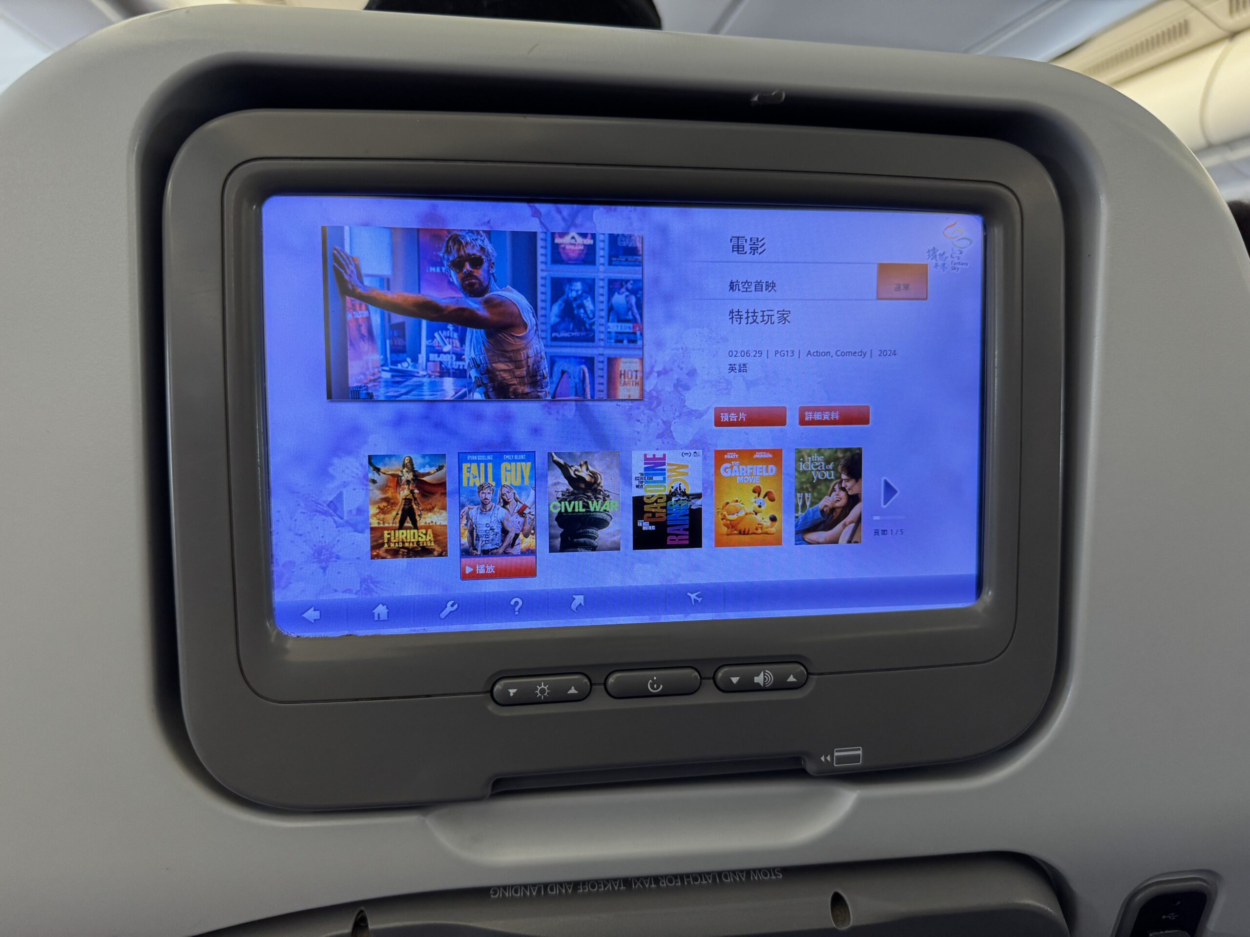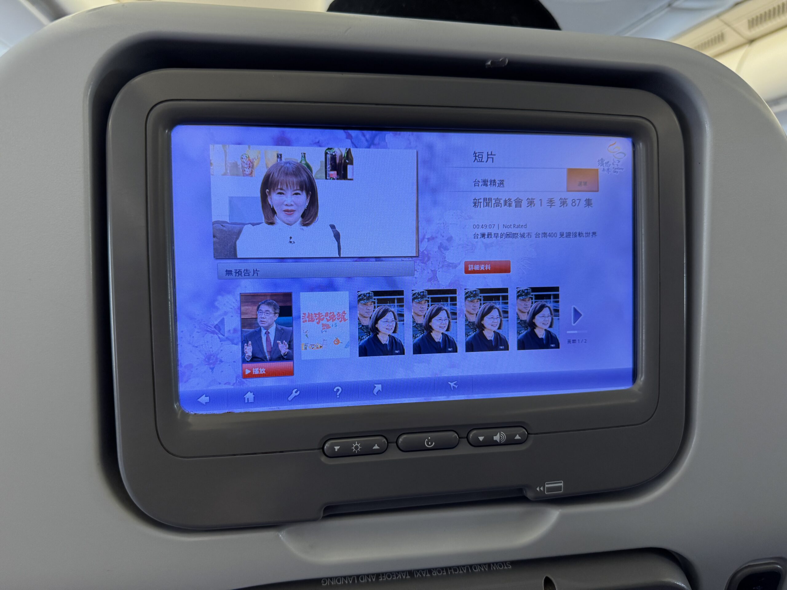 機上娛樂算是蠻豐富的,有很多電影、音樂可以聽可以看,也有小遊戲可以玩,但我自己比較喜歡還是看目前位置,也可以切換到飛機外的攝影機,蠻有趣的。