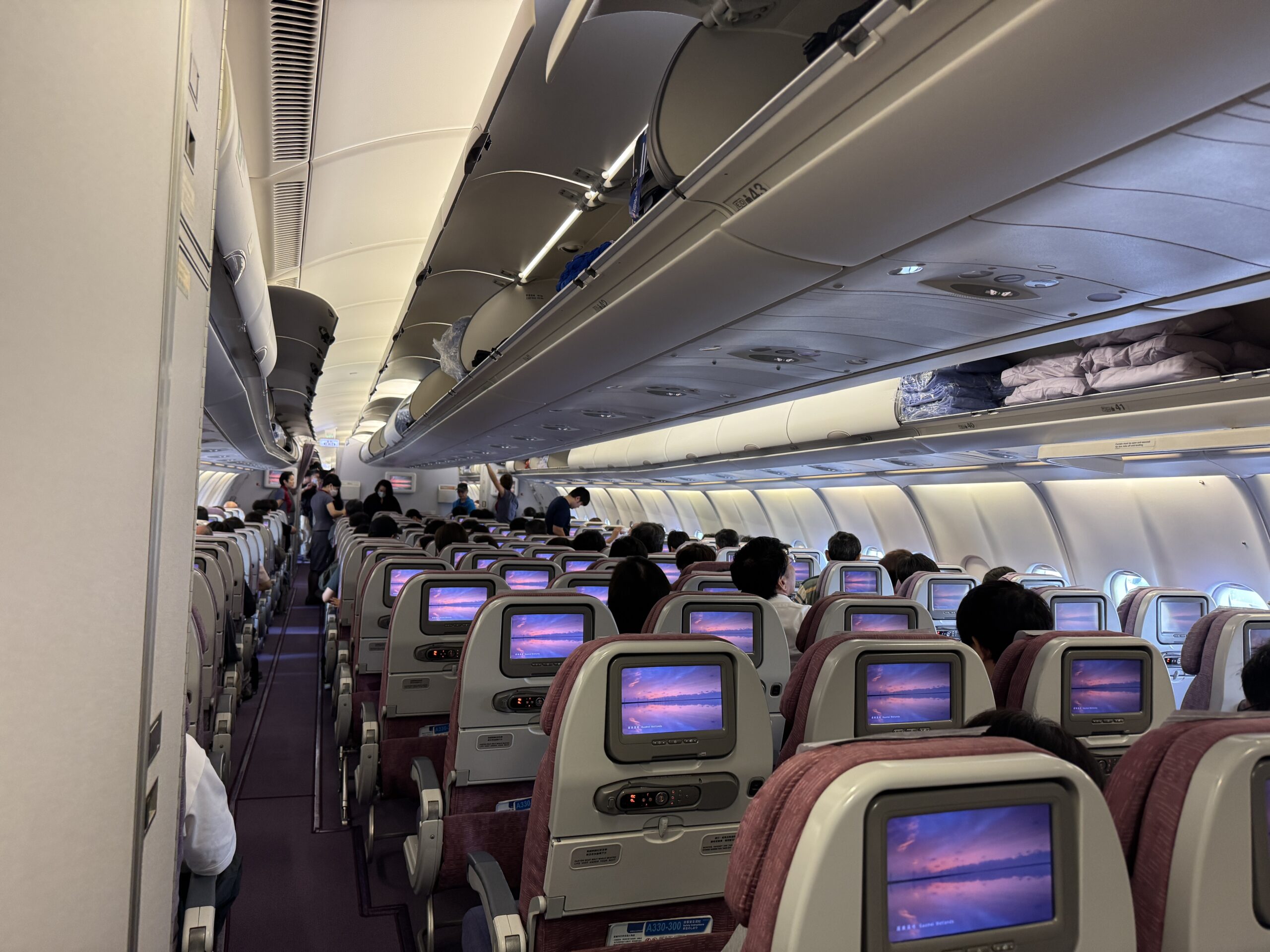 這次搭乘的心得非常開心,因為我們選了個非常好的時間是,早上飛中午回,而且又選在兩個市區的國際機場,就可以慢悠悠的整理好行李到機場等飛機,整體機上的乾淨程度也非常好,個人素質也不錯,大家都蠻有禮貌的,不過是蠻多長輩一上飛機,就開始搶毛毯跟枕頭蠻好笑的。