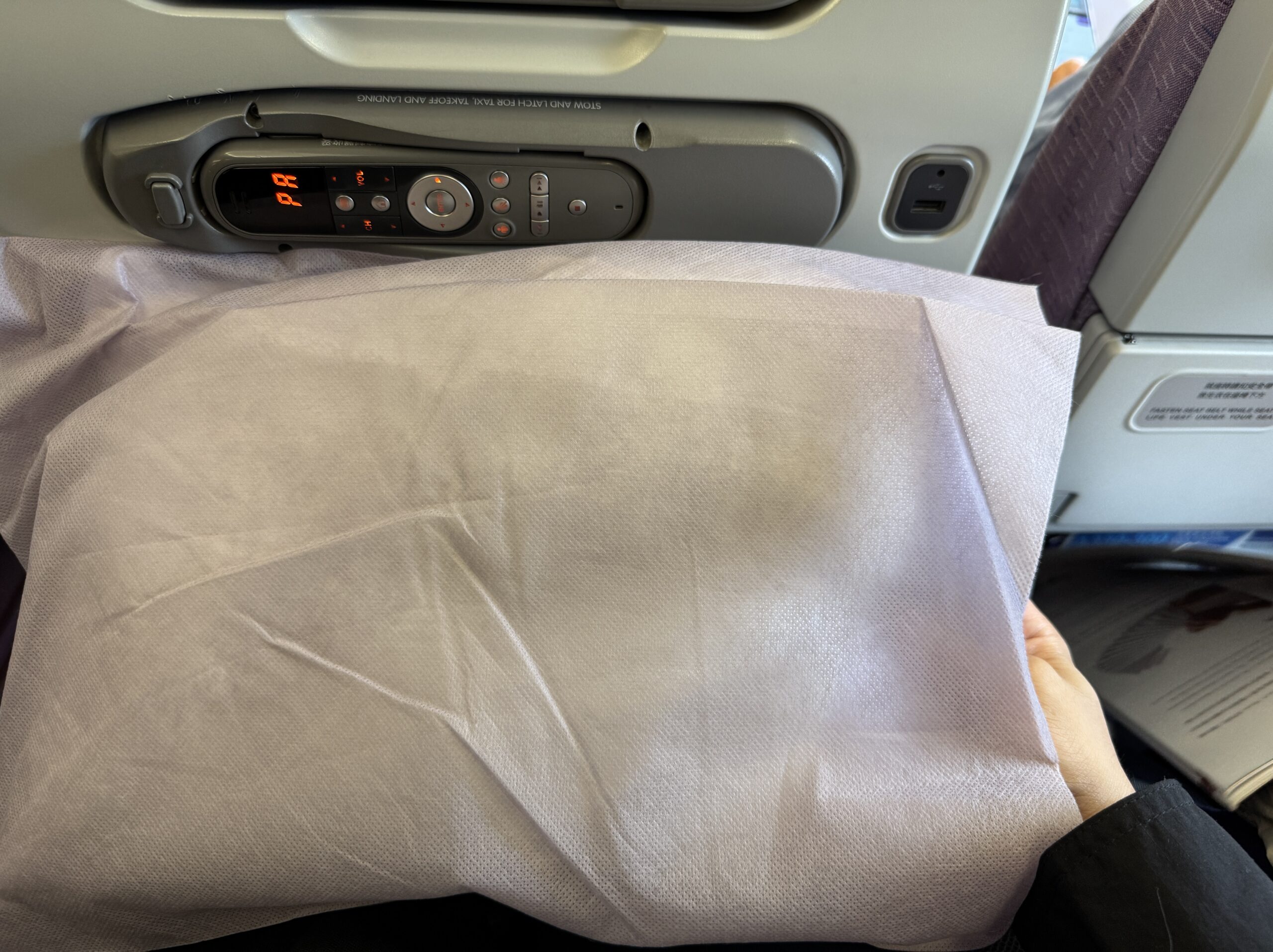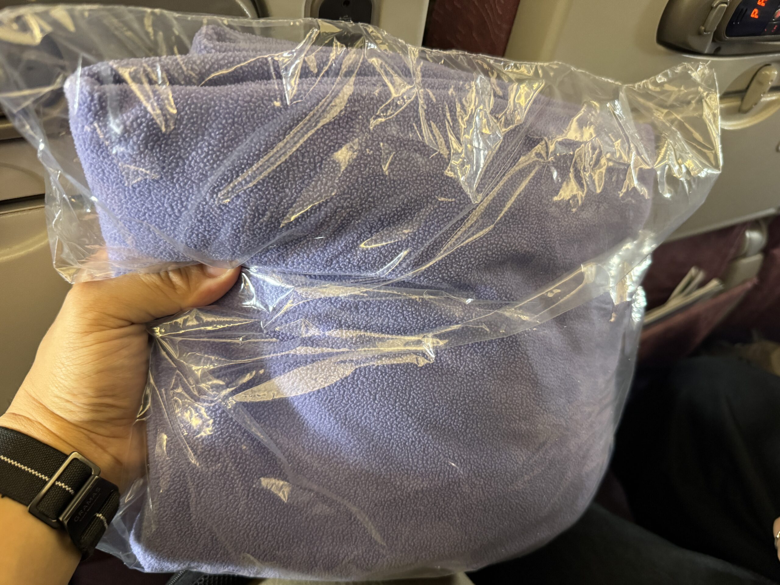上飛機的時候可以先跟空服要枕頭、毛毯、牌跟耳機(但耳機真的超級爛,加減用就好),這些東西都蠻強手,要早點拿比較舒服。