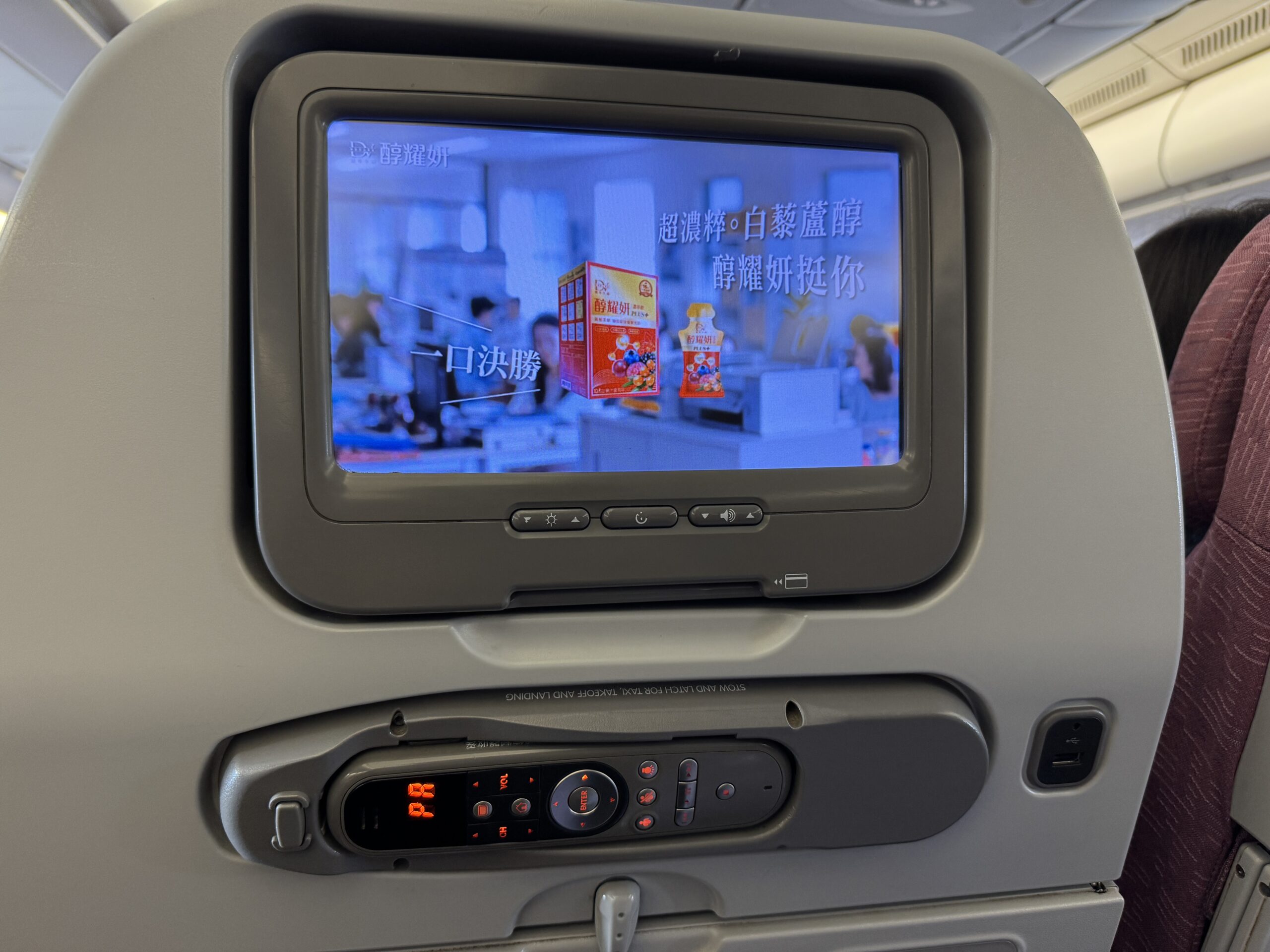 這次座的班機是A300-300,是空中巴士的機型,採2-4-2的排列,真心覺得這樣排列超級讚,過去坐小飛機廉航是3-3的位置,當我坐靠窗且要出來的時候,還要跟旁邊兩位說借過,如果是認識的就還好,跟不認識的…I人如我就有點尷尬,這樣22的排列,就不用麻煩太多人比較舒服啦。