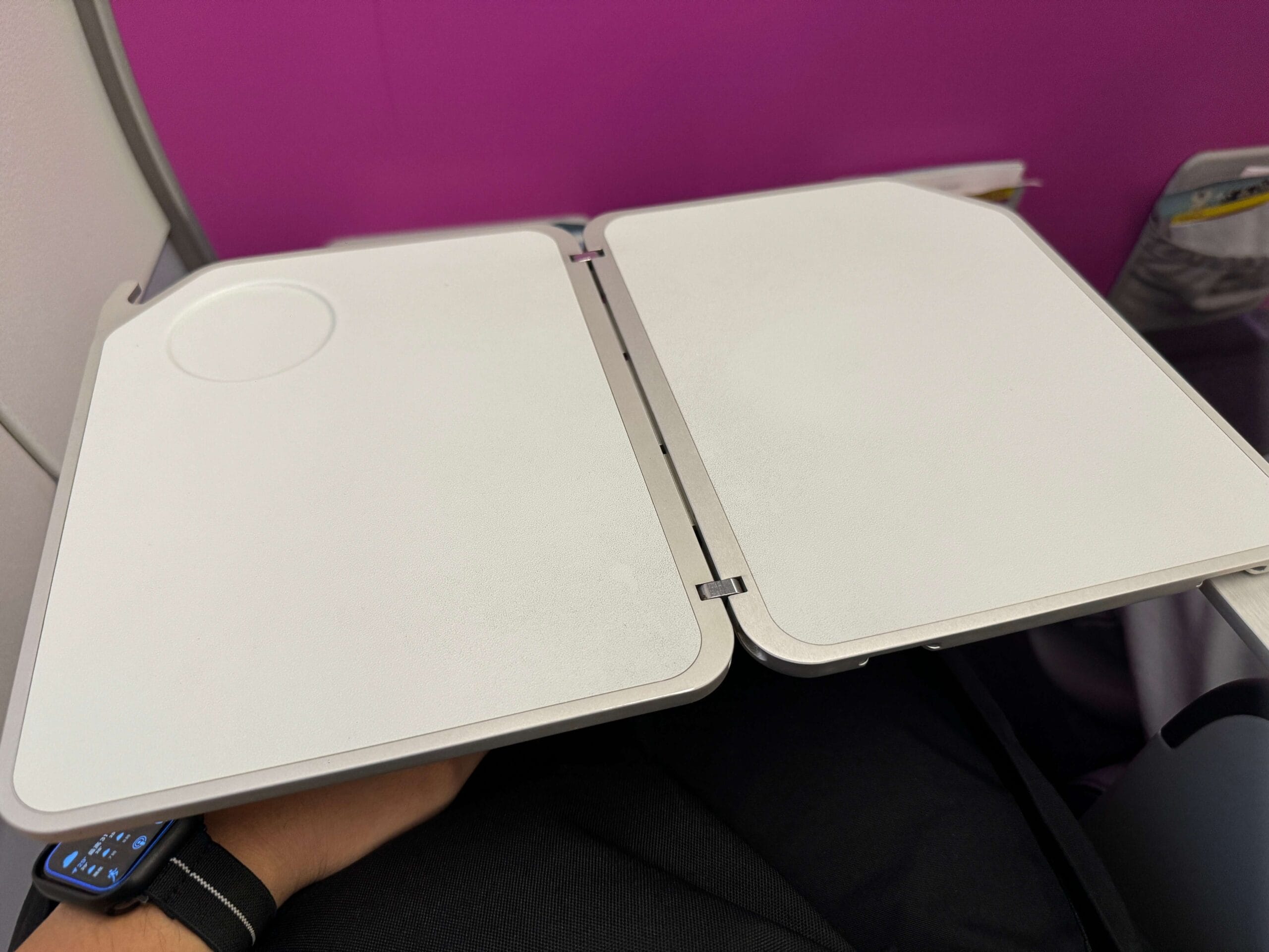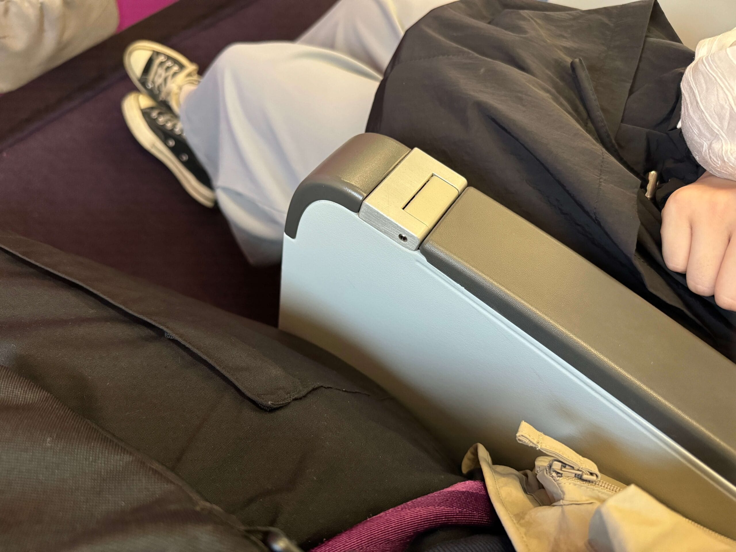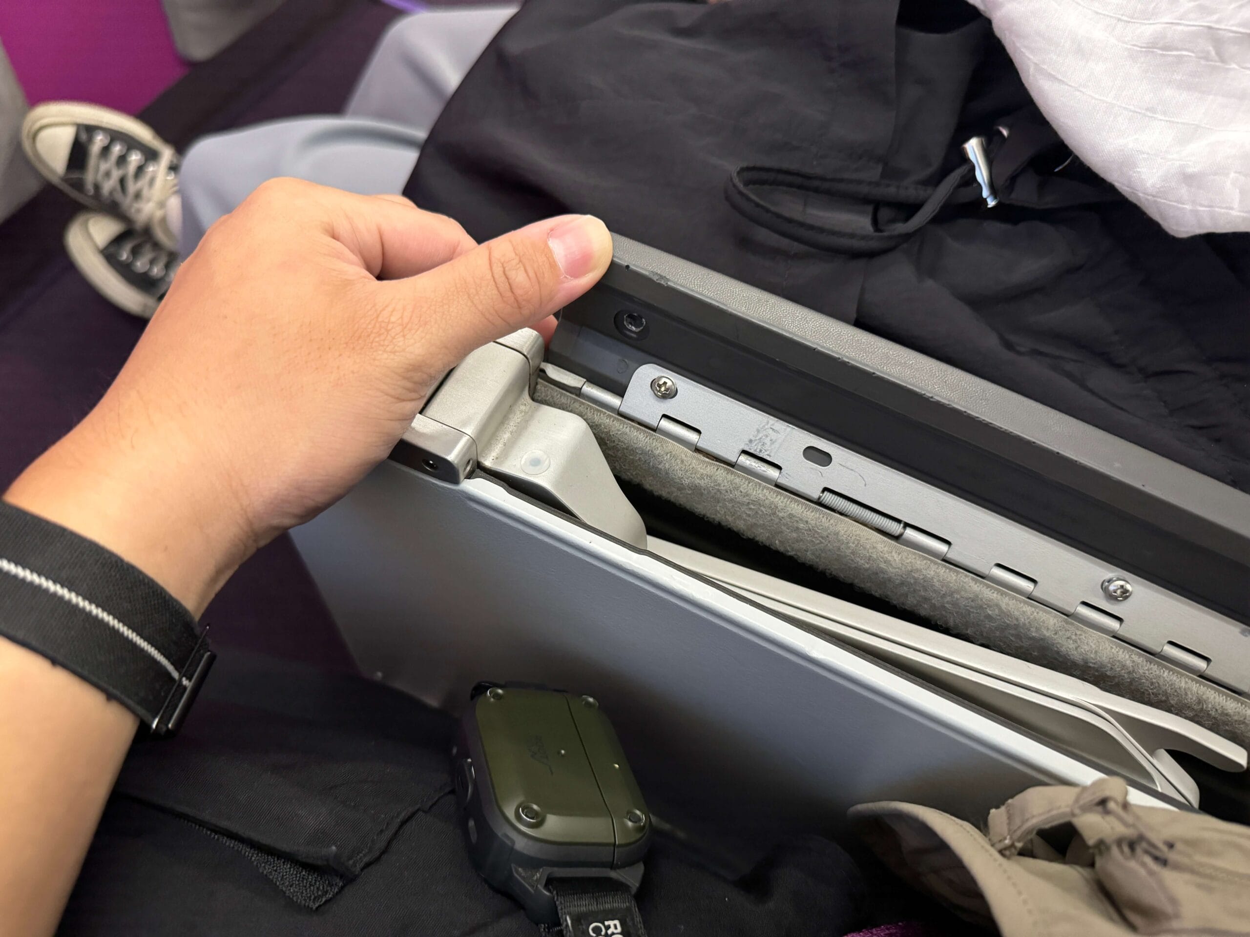 但第一排就沒有前方桌子可以拉下來,反而是改到側邊,像是學校的那種座椅一樣。