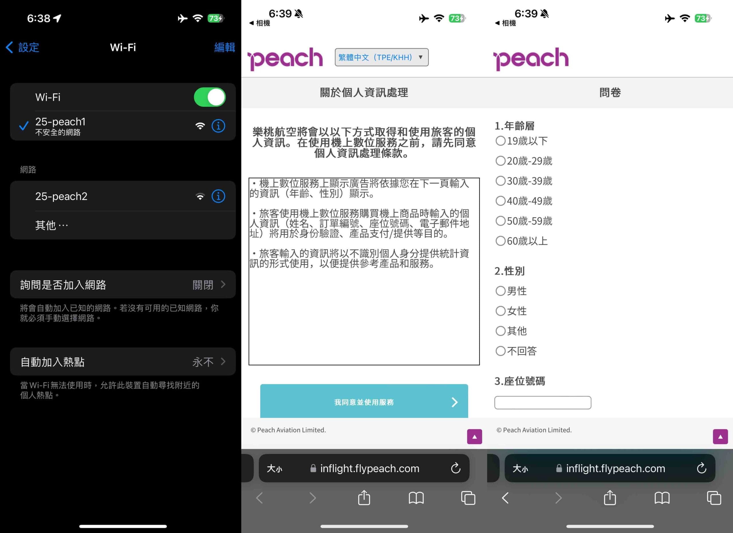樂桃航空蠻特別的地方是,他飛機上有Wifi,但主要是只能連接內部網路。