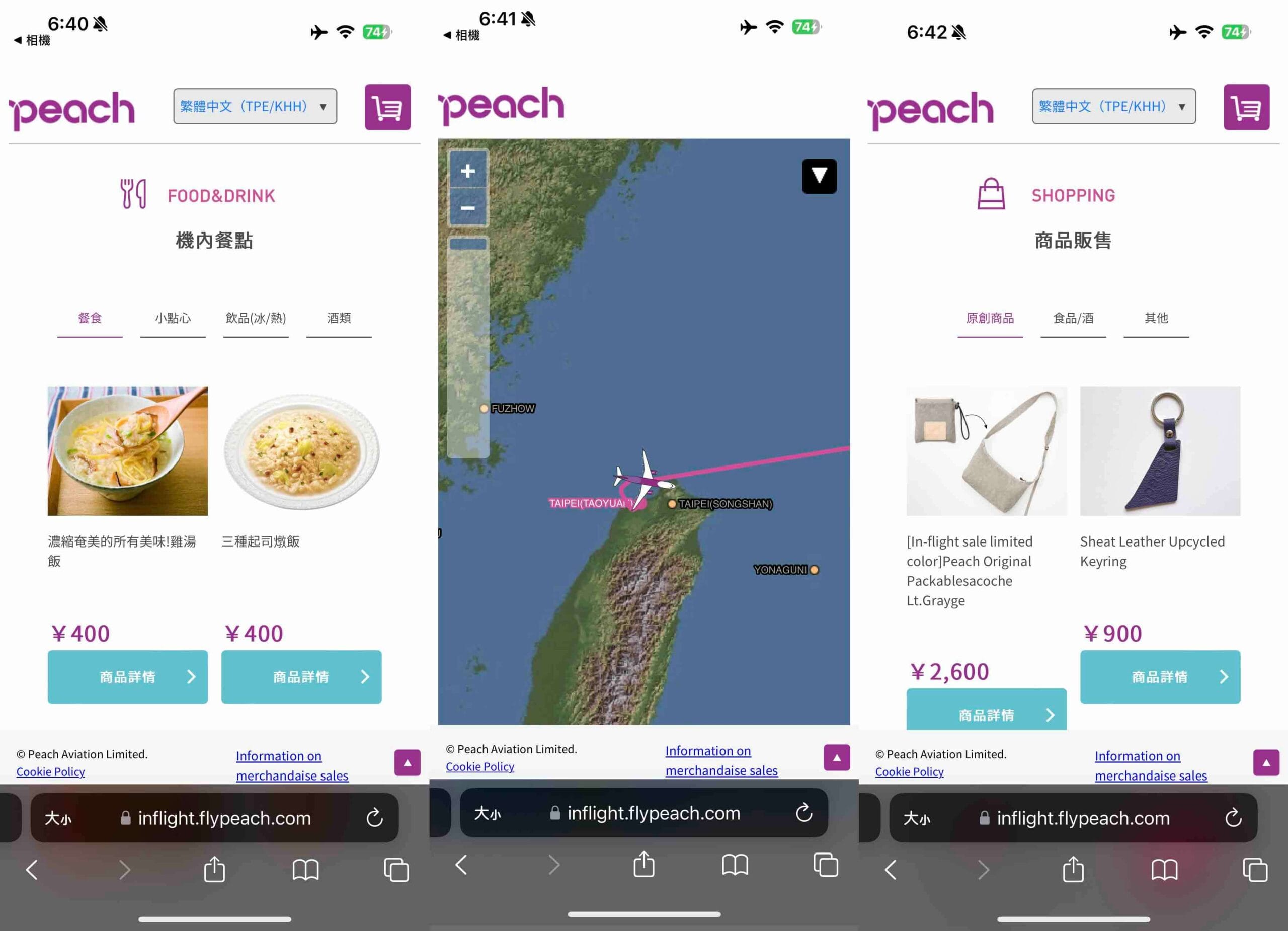 連上後就可以看到,機上餐點得菜單、飛行狀況以及販售的小禮物等,可以直接手機下單不用跟空服員要。