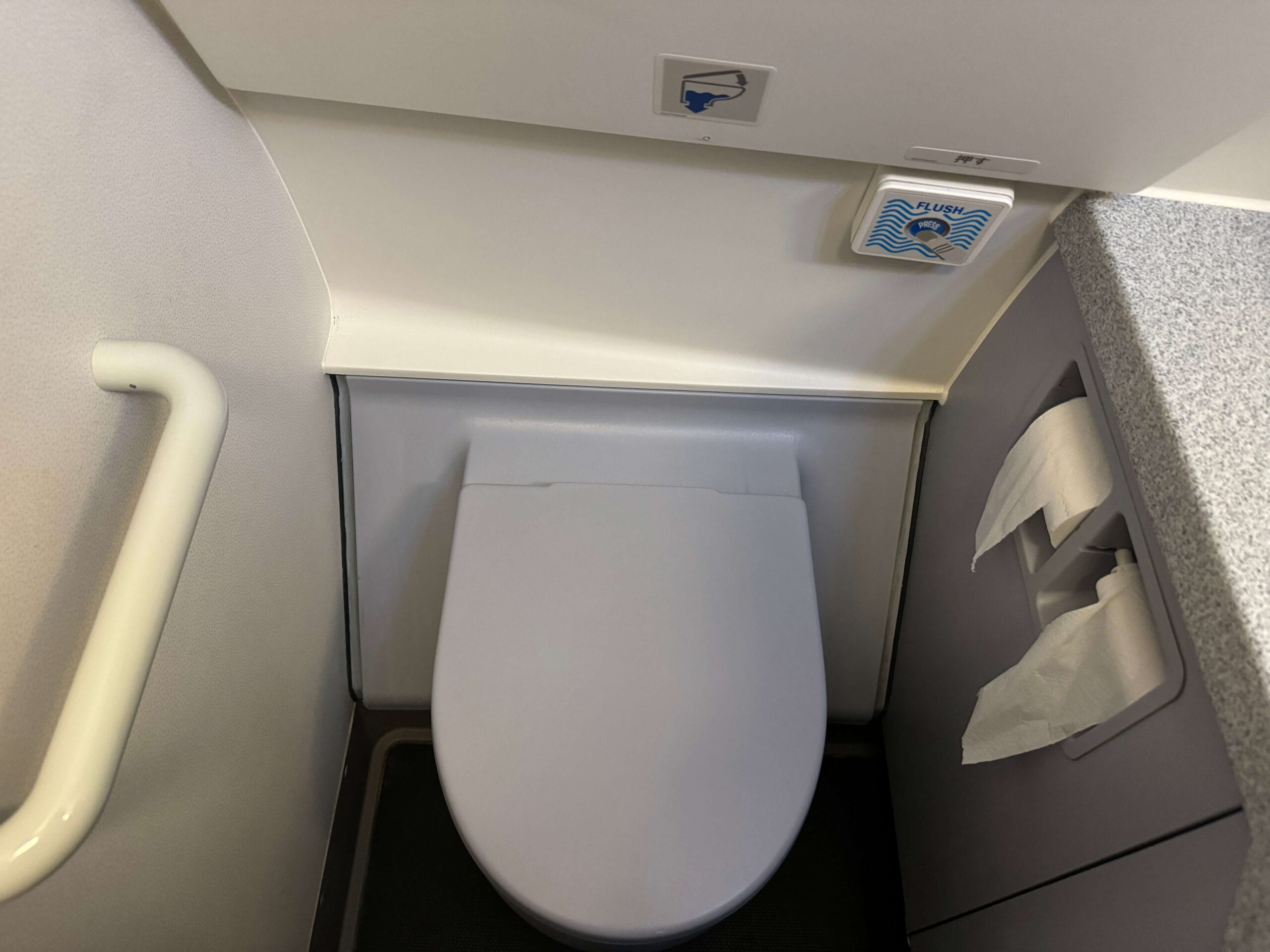 不免俗的還是要去看看廁所的配置如何。但感覺A320的機型都長得差不多,跟熟悉的虎航很像似。