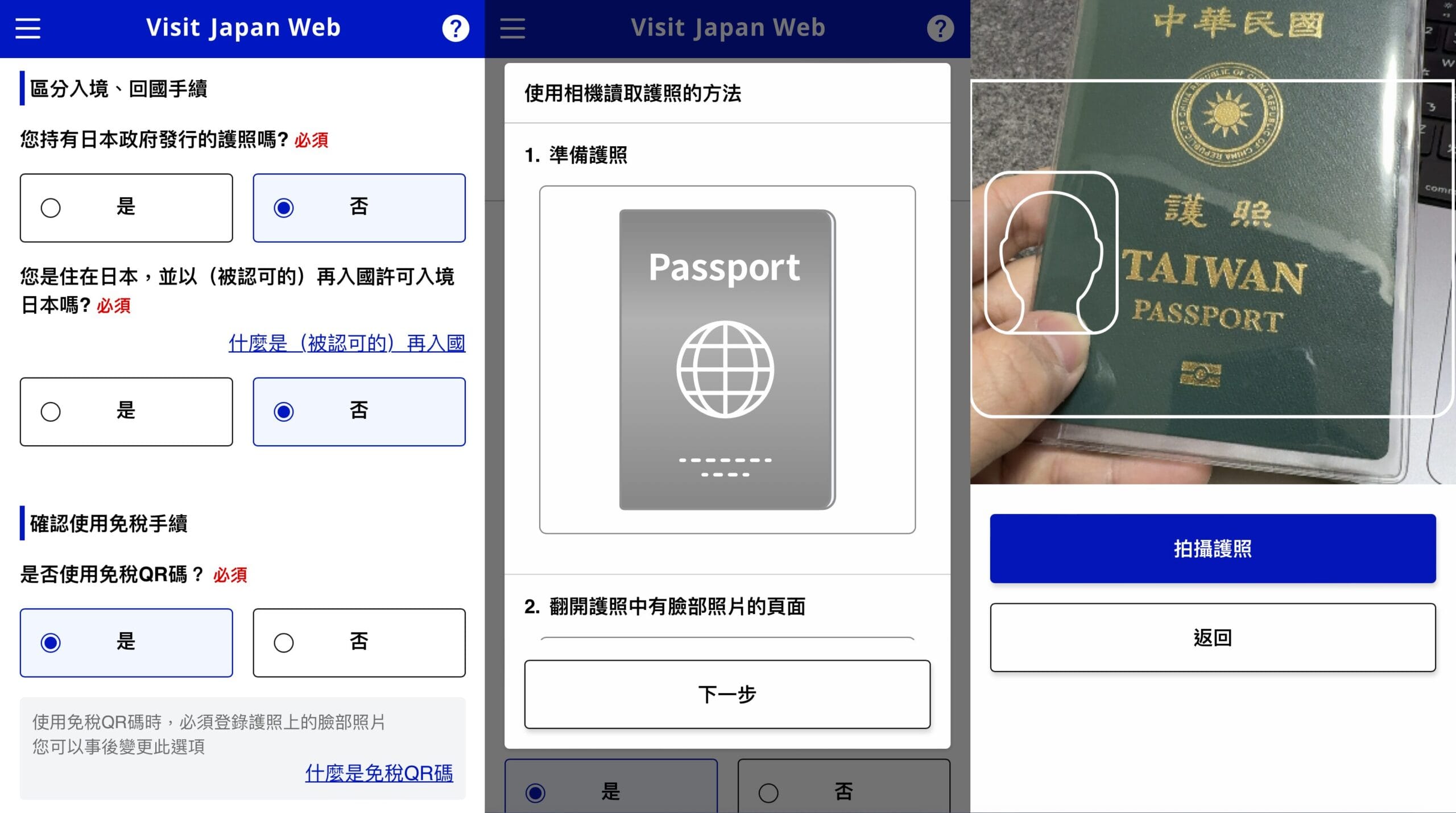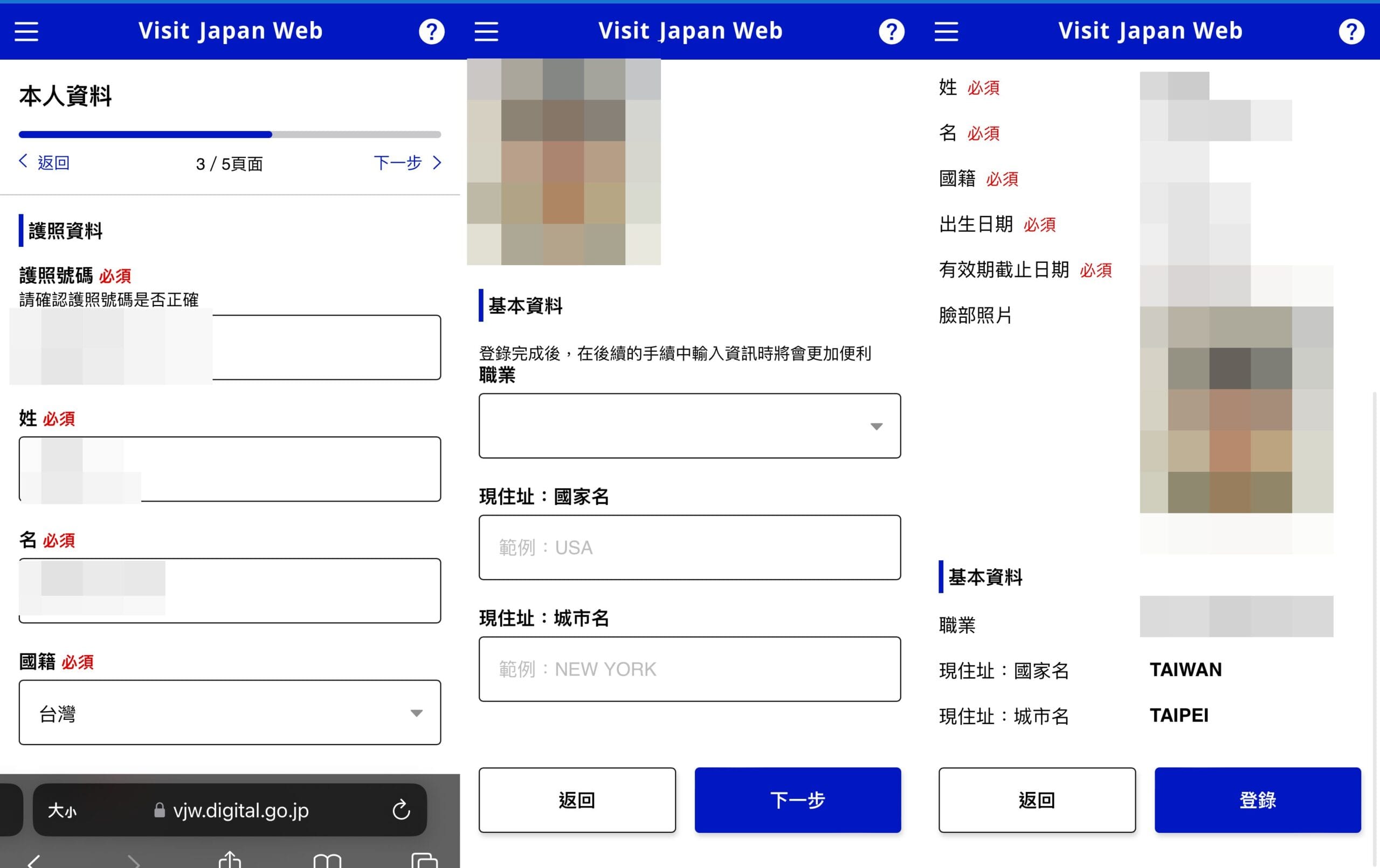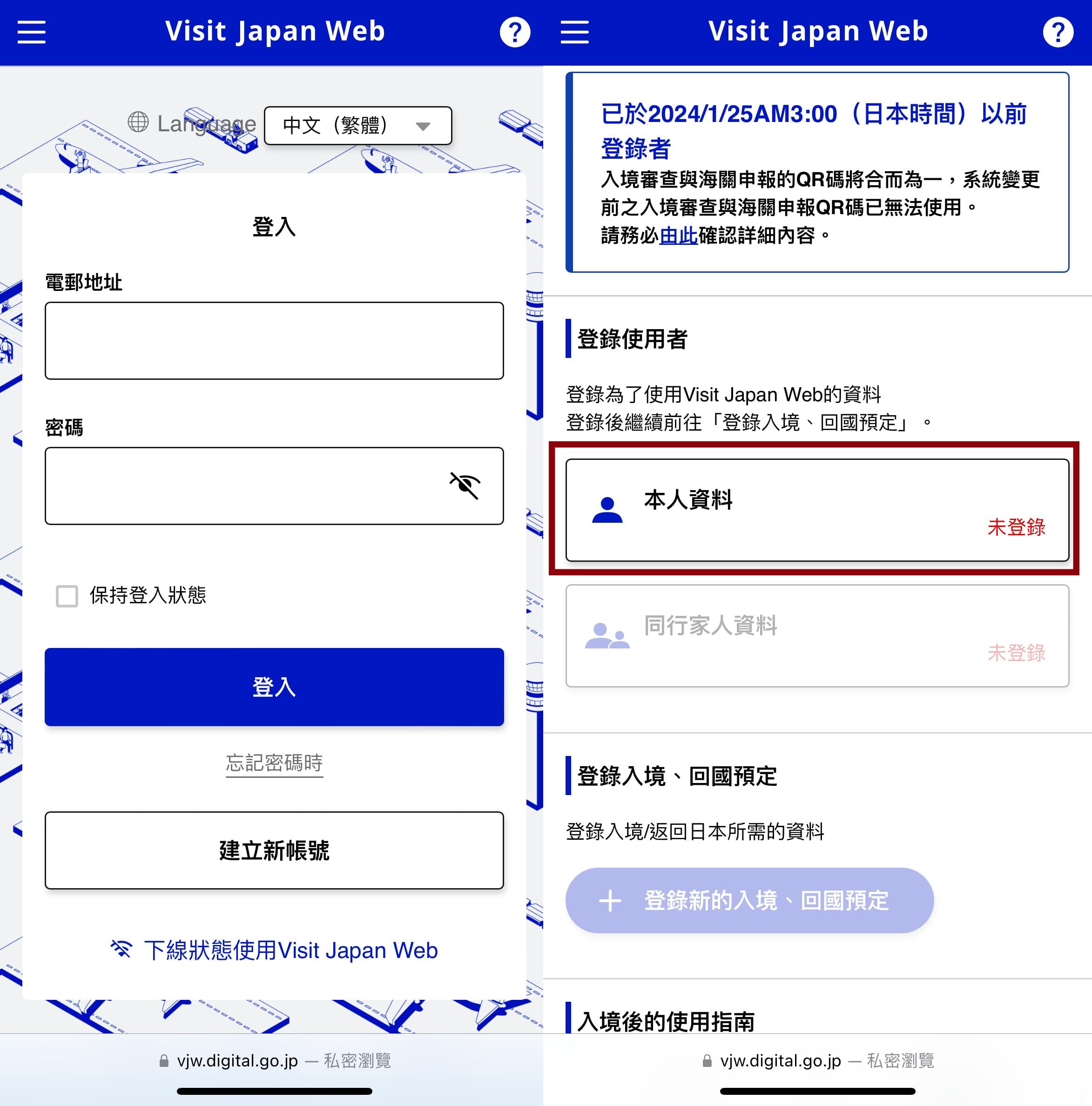 申請好帳號後,接著就可以來登入使用者了,主要是登入一些基本資料,之後就可以重複使用,因為登入基本資料需要拍攝護照,因此用手機本版來使用是最為方便的。