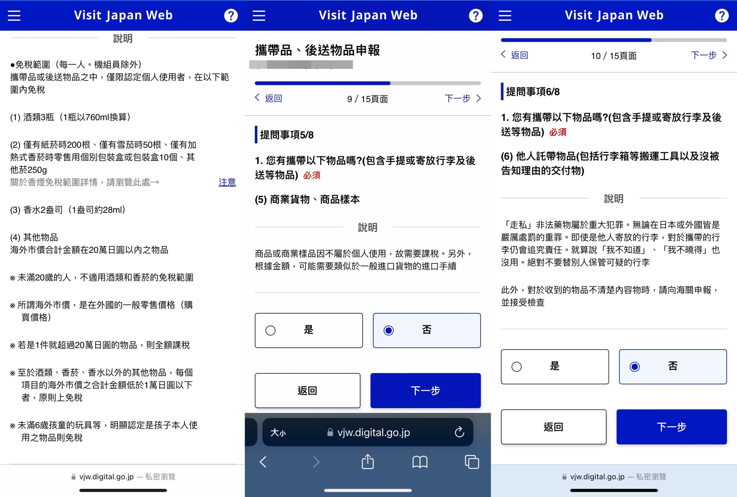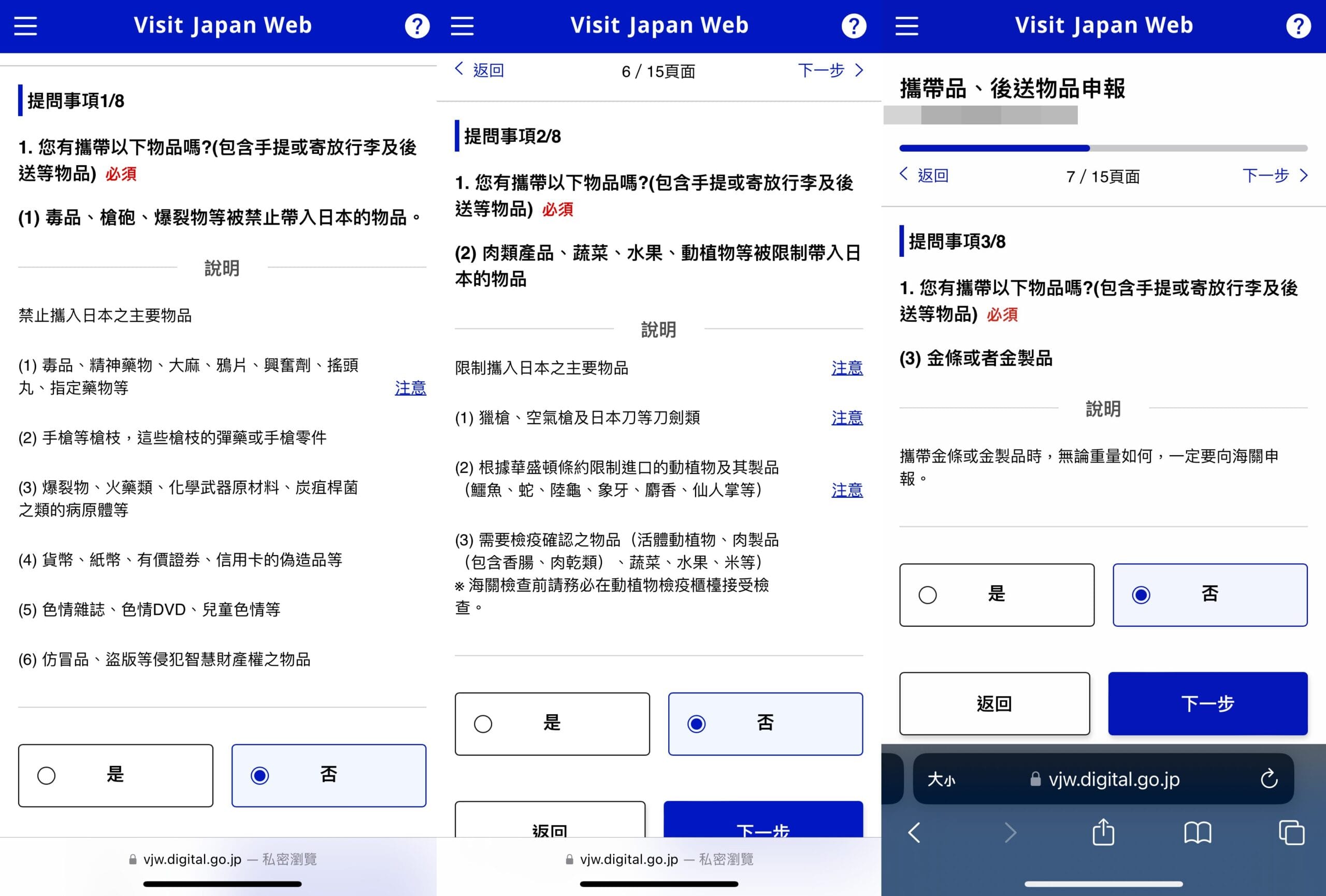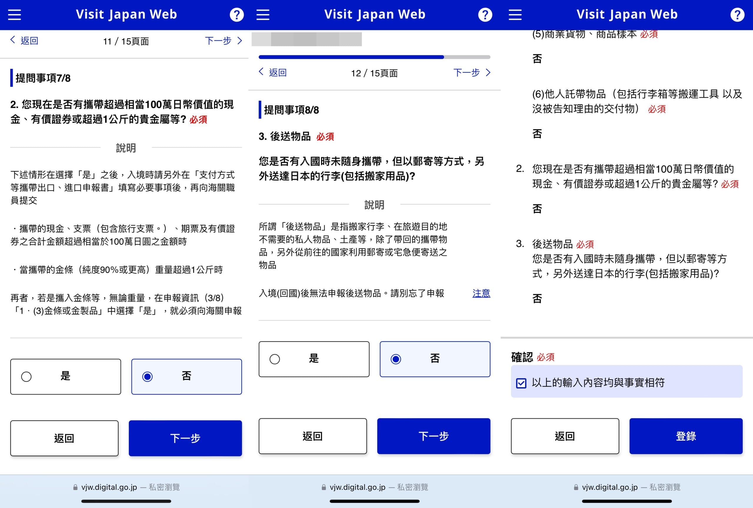 個人資料登錄完成後,接著要開始填寫入境日本的時間、地點等相關內容,方法也很簡單照著流程走就沒問題