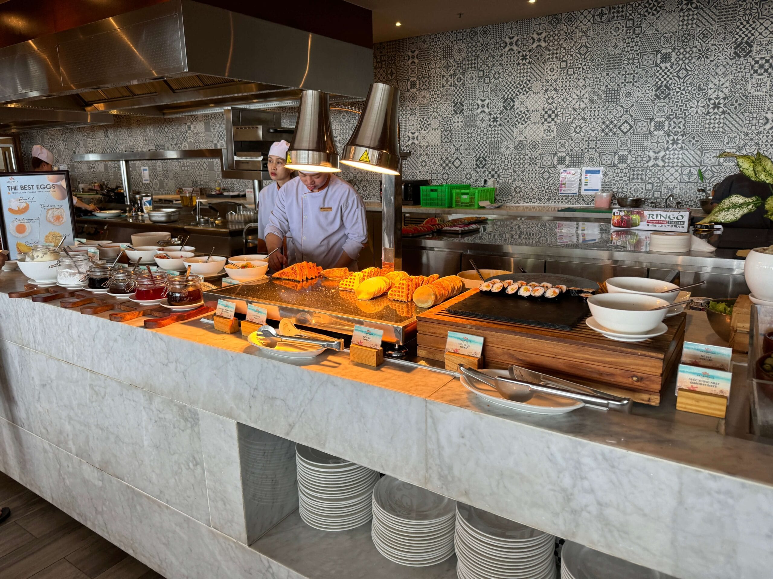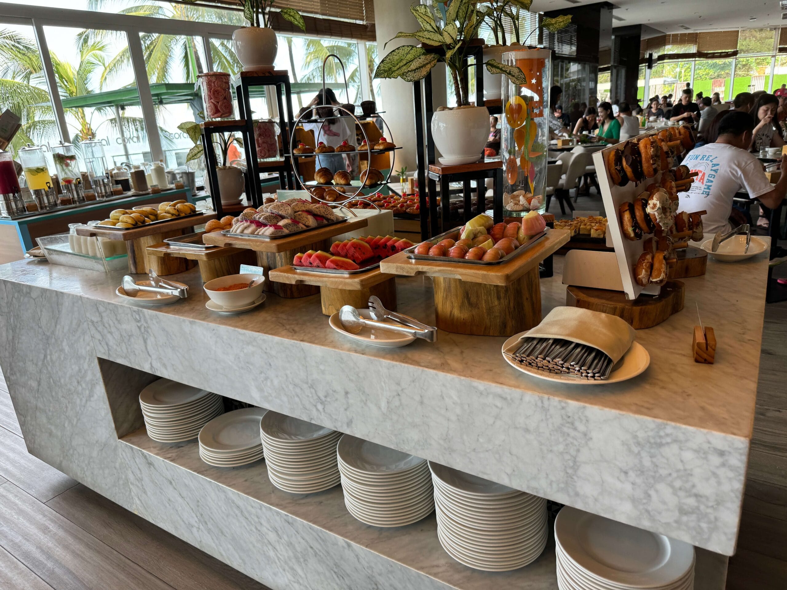 Seashells的早餐還算是豐富,有非常多各種國家的主食,生菜也非常多,還有很多當地的水果。位置非常多,還可以選擇到戶外用餐,非常愜意。