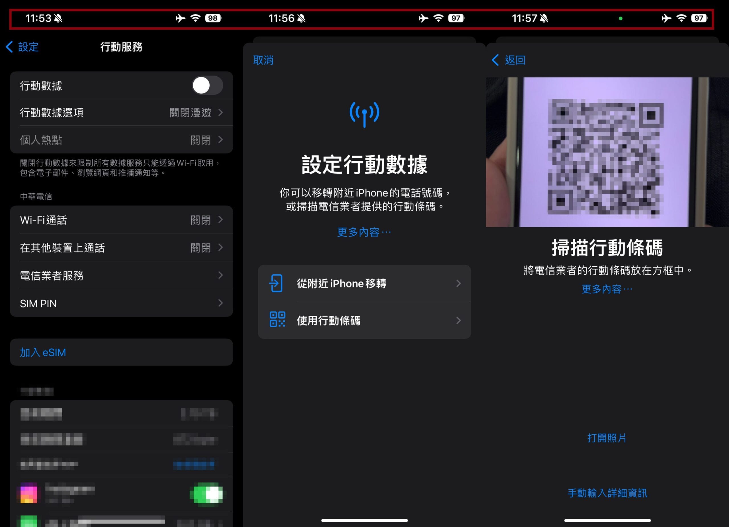 點選加入eSIM>跟著流程跑>掃描QR Code或者直接打開相簿照片。
