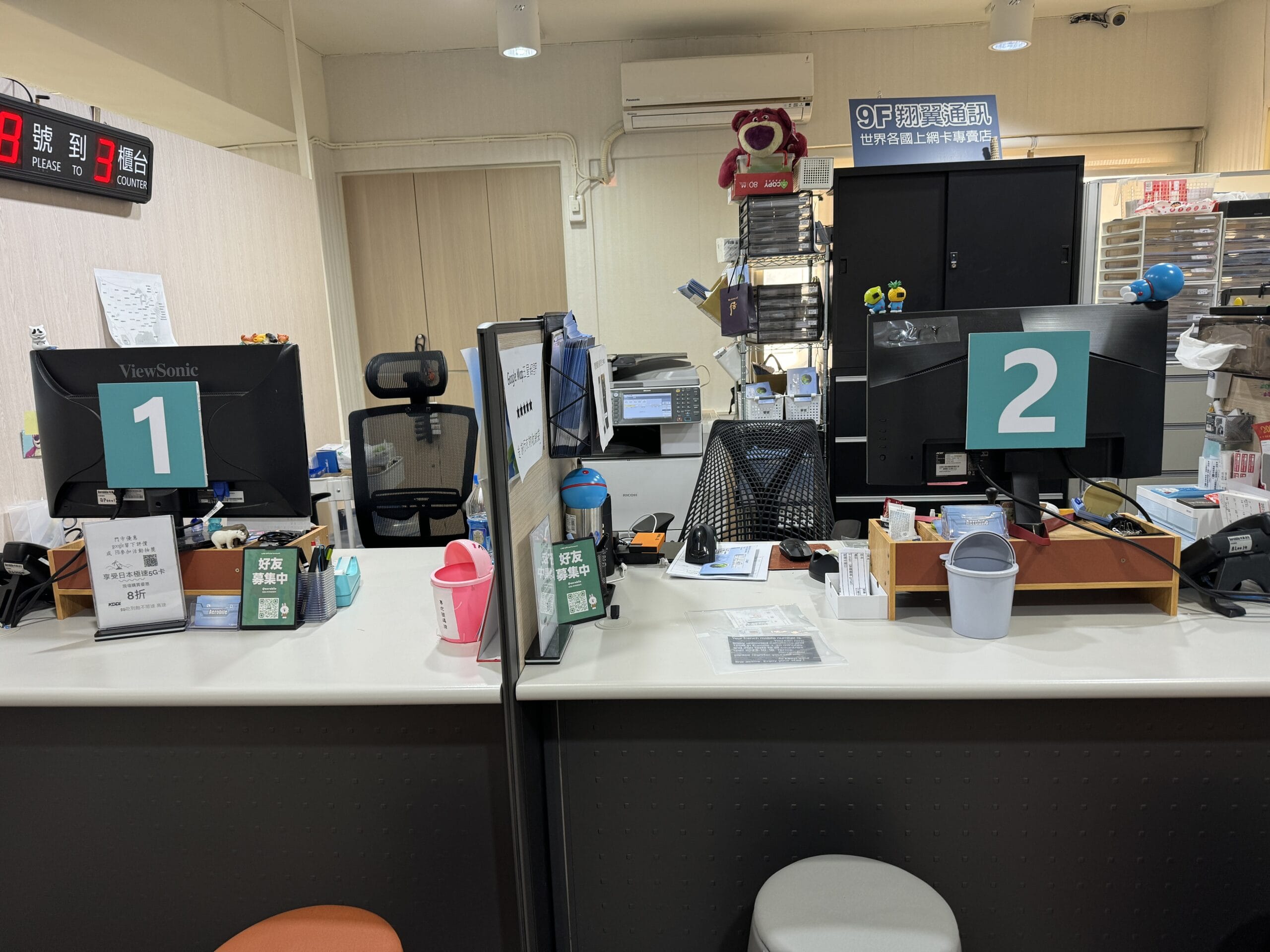 門市有三個櫃台,很像銀行的櫃檯那樣,要抽號碼牌的。