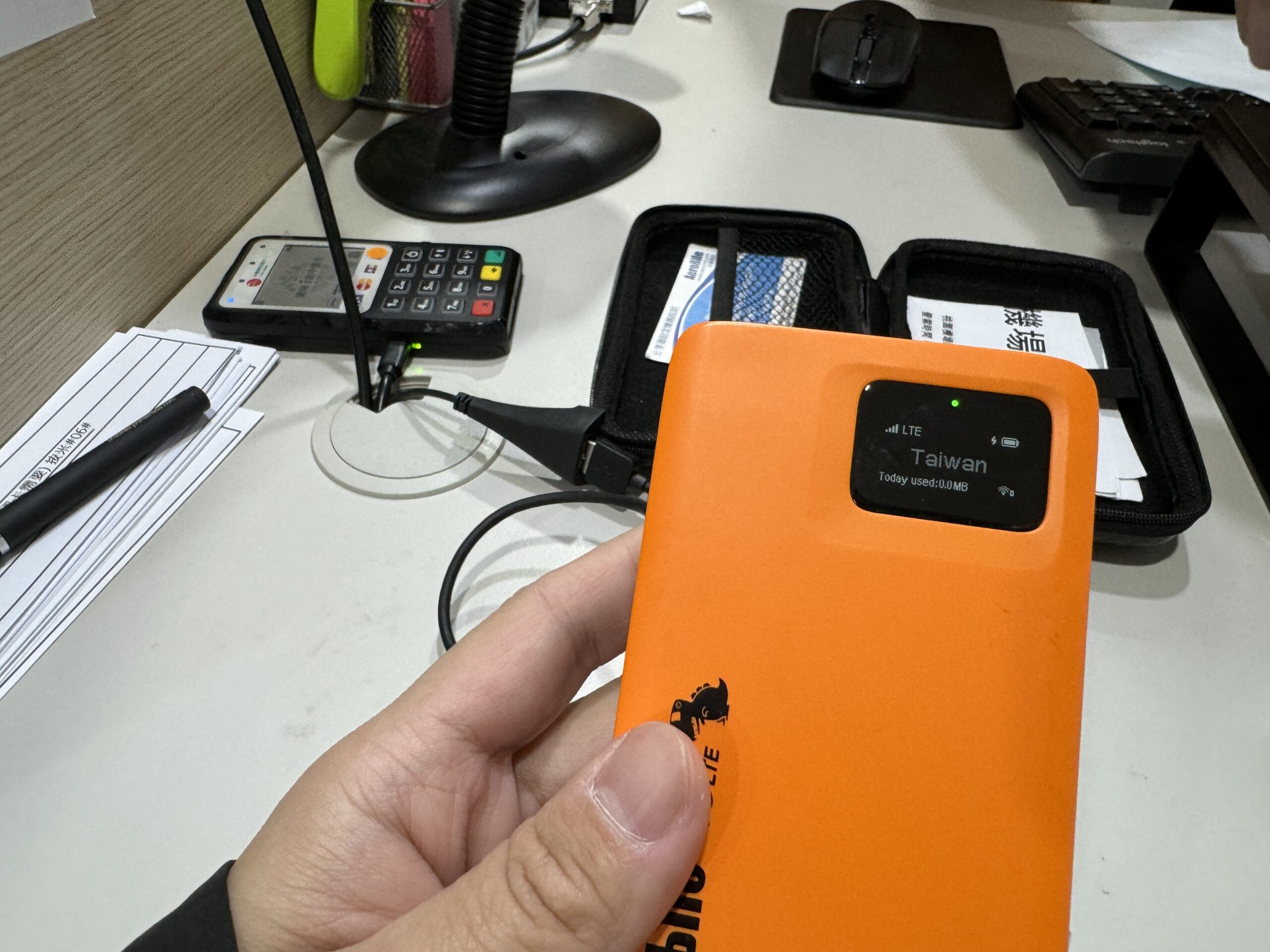 這次門市取貨的原因還有一個原因是確認「wifi機器」功能正常,如果用宅配收到,假設真的不小心有問題,又面臨準備要出國,那真的很難在期限內交換機器..所以現場一定要測試「是否能連線」以及「是否能充電」。因為目前還在台灣,所以他顯示是TAIWAN,但是連上後還是沒有網路的,只是要測試連線功能是否正常。